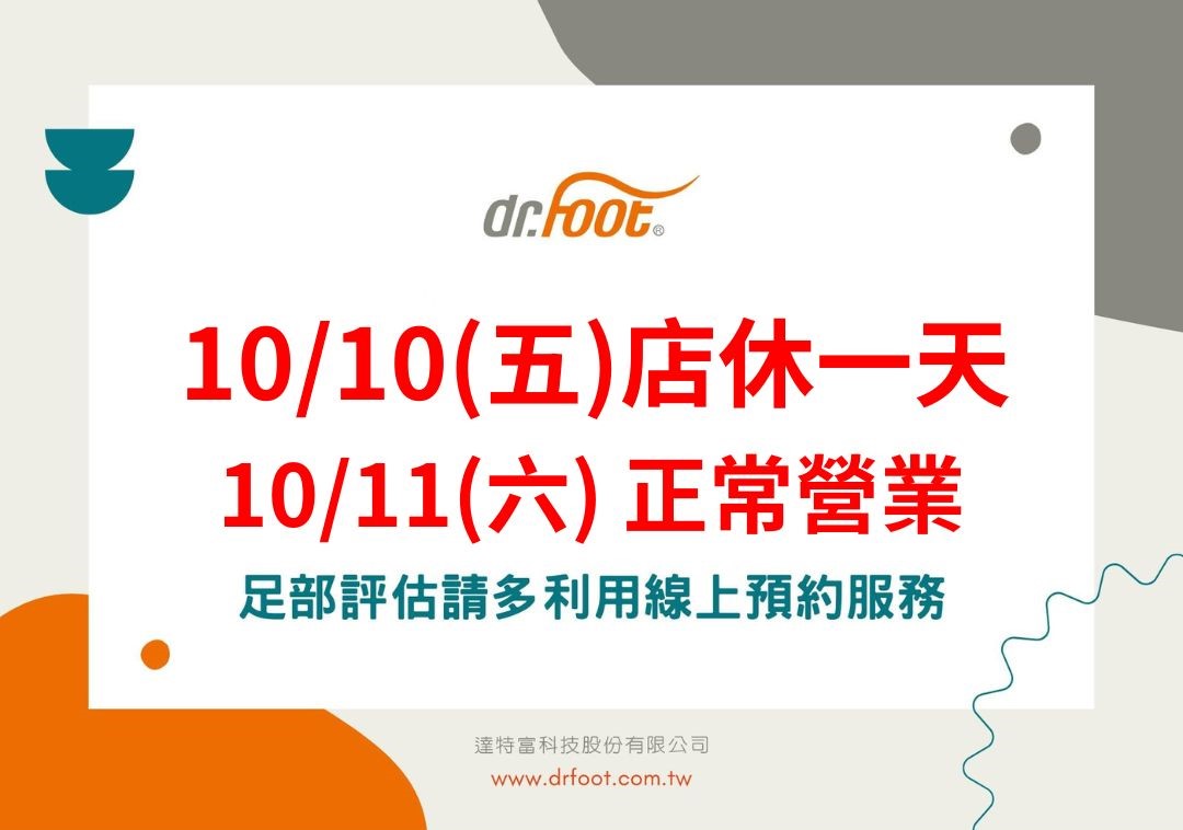 10/10 (五)國慶日-達特富台中北屯門市-店休一天。