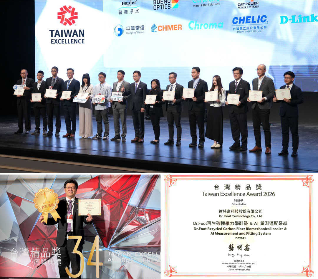 Dr.Foot 憑藉極致的舒適度、完美的設計與卓越的品質,在層層考驗下脫穎而出,正式榮獲國家級的最高榮耀——「台灣精品獎」!