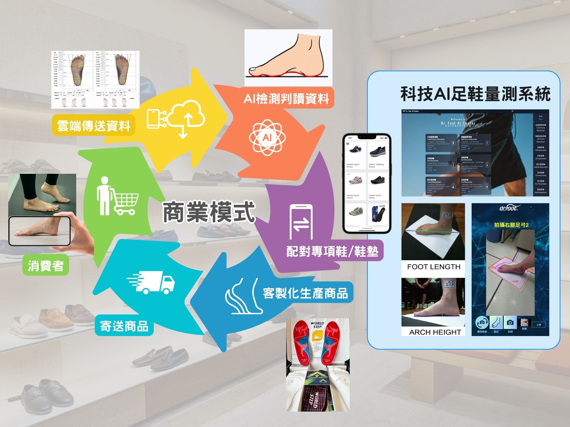 此次獲獎的 AI智慧足鞋檢測與鞋墊處方系統,整合超過 35萬筆亞洲足型與處方資料及142,092張足弓影像資料,透過生成式AI模型訓練,可精準辨識足長、足寬、足弓高度與拇趾角度等關鍵足部參數,將過往高度依賴人工經驗的驗配流程升級為 數據化、標準化與可規模化的智慧系統。該系統結合 足壓、3D足型、足跟角度、姿態型態醫學(Postural Medicine)與步態分析,可從足底壓力分布到人體姿勢平衡進行整合評估,建立完整的 足鞋健康評估與訂製力學鞋墊處方服務。